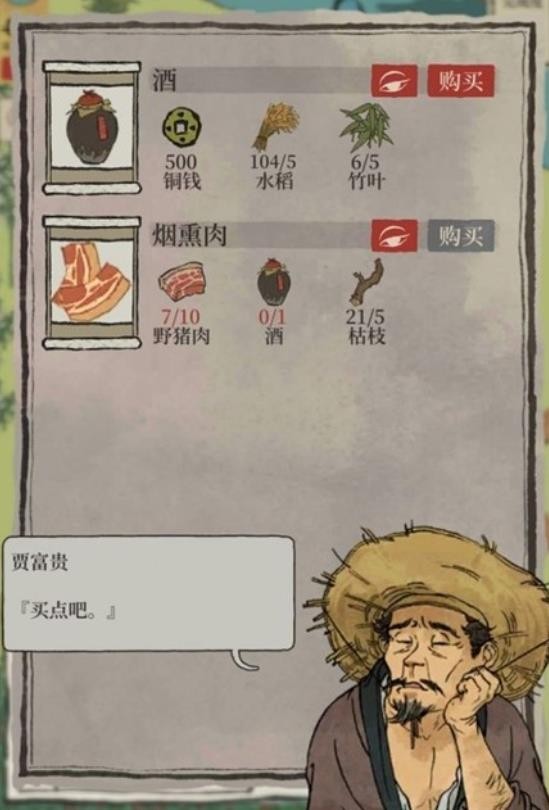 去鱼贩贾富贵的店兑换烟熏肉。