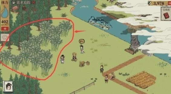 竹叶在贾富贵的后面有一片竹林可以获取。