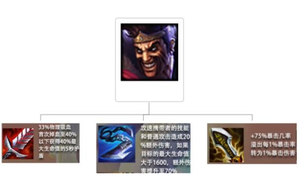 主c帝国之斧(德莱文):最优出装【汲取剑(饮血剑)/无尽之刃/鬼索的狂暴之刃(羊刀)】因为在3剑士的加持下,并不会缺少攻速,汲取剑(饮血剑)是帝国之斧(德莱文)的必须装备,需要这件装备提供持续的续航。