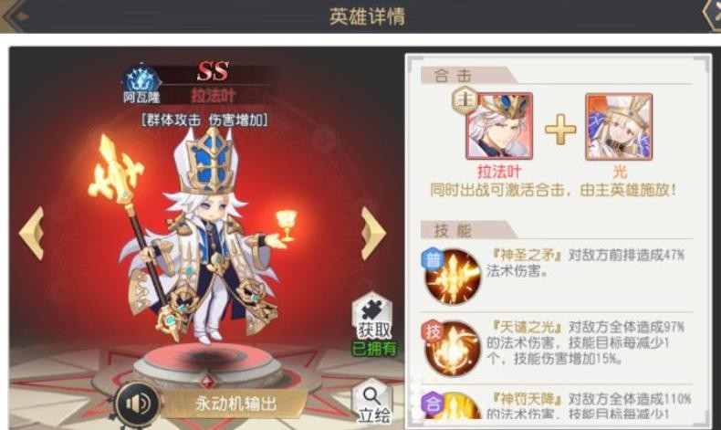 【二号位】阿尔冯思:光环辅助,增加上阵英雄暴击几率,全体回能