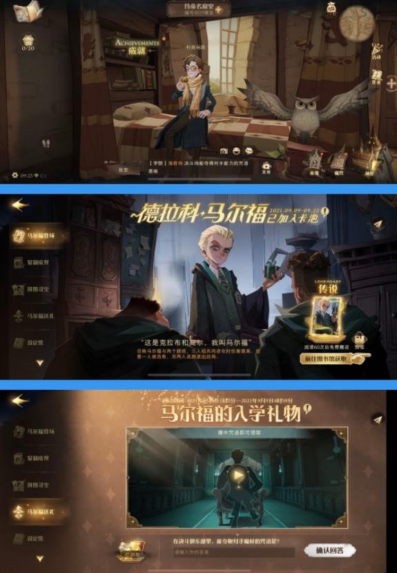 在游戏内进入“马尔福送礼”活动界面,可以领取一个礼包。同样的,领取需要完成【学年记录9】才可以解锁哦!