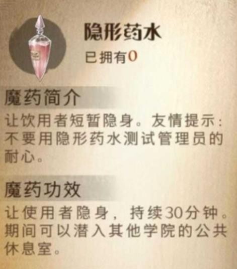 哈利波特魔法觉醒隐身药水效果是什么?