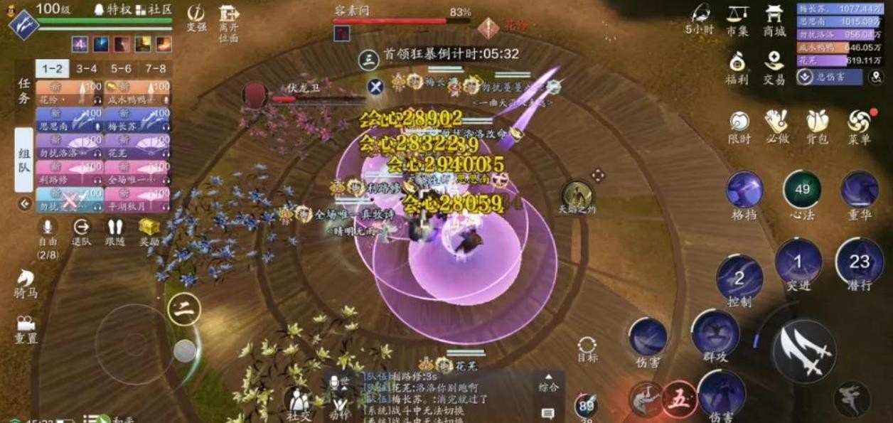 生息之花:第一阶段除了一般的AOE技能以外只有生息之花这个技能,开局直接烽烟,剩余时间05:40的时候容素问会对3名玩家进行点名,被点名的玩家相互分散,把花田落在外圈。第一阶段的伏龙卫推荐集合一起群殴,所有人都在BOSS脚底下输出,击杀并获得解药的同时消除花田即可。