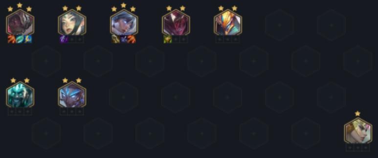 后续上8找出完整阵容后,目的只有一个——就是质量提升,找亚索三星的同时顺带找盲僧、豹女的三星,亚索三后,看其他牌来的多少决定在8人口追三还是上9补充人口。