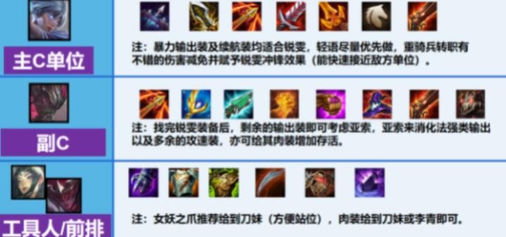 关键装女妖之爪给到艾瑞莉娅(刀妹),肉装可给到李青或刀妹。