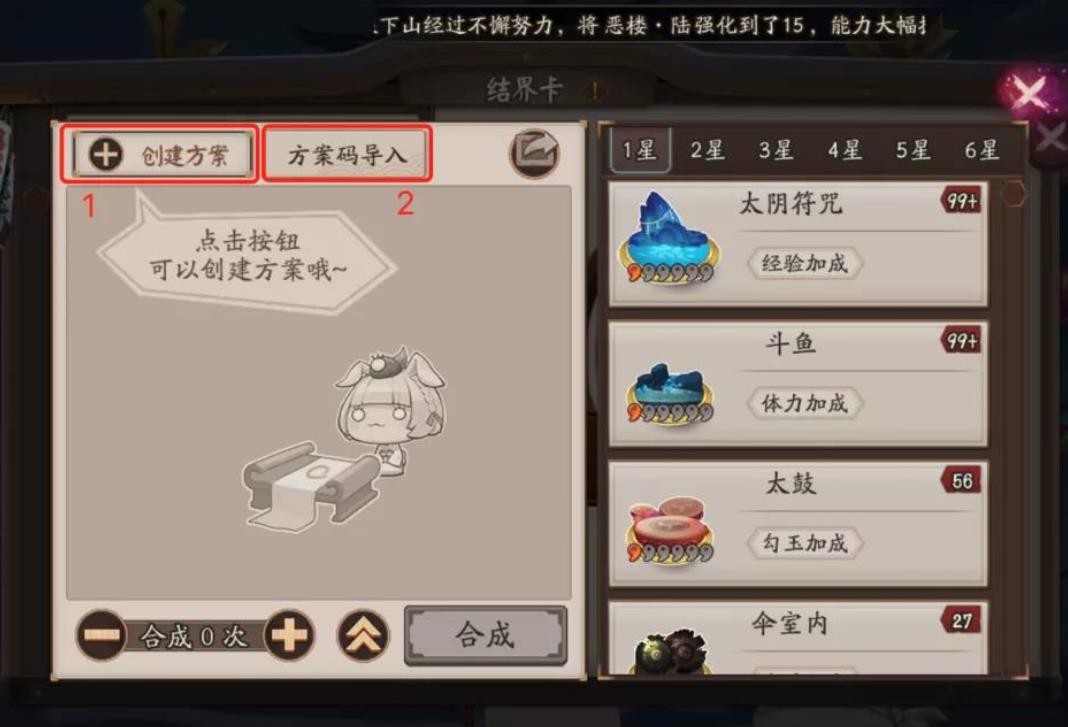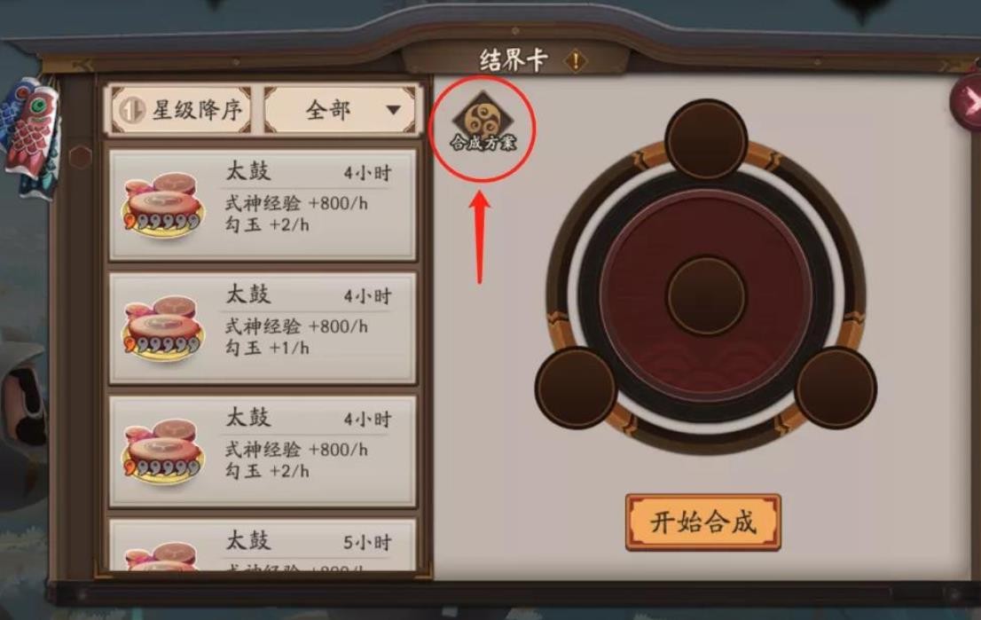「结界」—「结界卡」—「合成」—「 合成方案 」