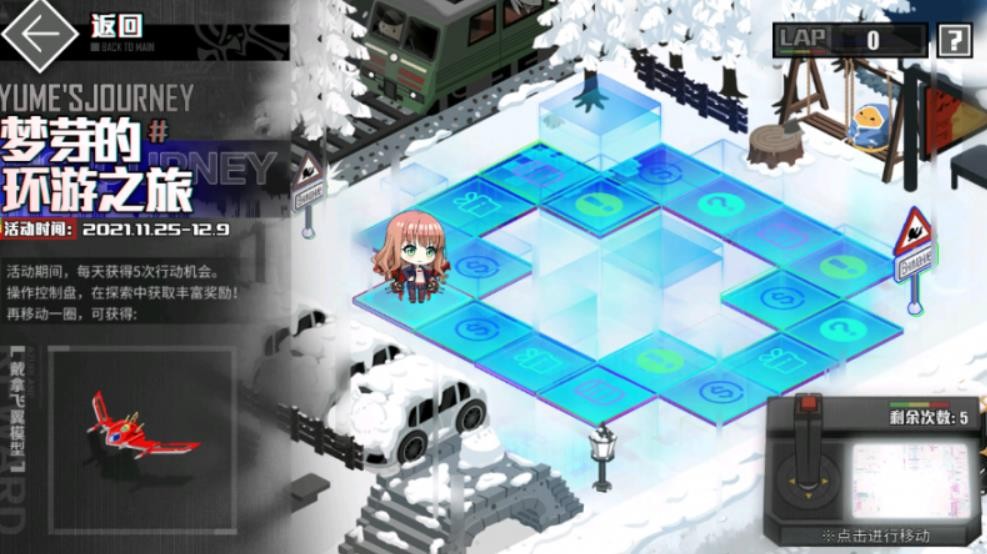游戏中,根据玩家停留的格子可获得不同奖励,每次经过起点可获得200物资,前五次经过起点可获得包含限定家具和在内的额外奖励;