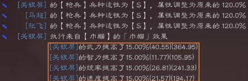 在王翼的加成下,关银屏的属性享受到了135%的加成(跟兵种适性加成一起计算),我这里选择给3个武将全武力加点,直接追求爆发,不跟其他人内卷速度哈哈哈。