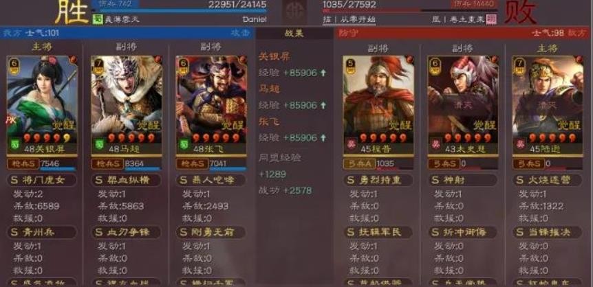 我说说这个阵容不要替换的战法。盛气凌敌+横扫千军、青州兵、关妹、张飞、刚勇,这几个是这队的核心输出与控制,不能替换。换句话说,就只有马超可以替换233。