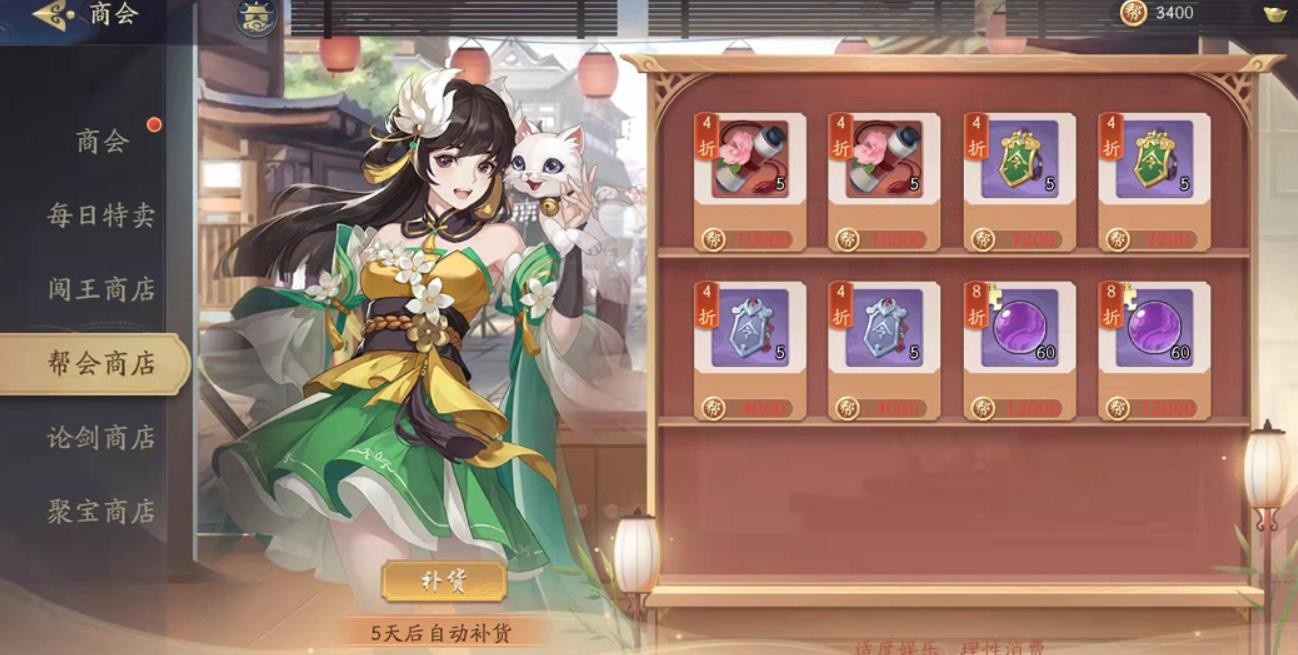 2、帮会币:可在帮会商店购买招募令、前缘绘卷、高级侠客残缘等稀有物品,可以说是后期前缘绘卷、招募令的主要来源之一,是打帮会战的主要目的。