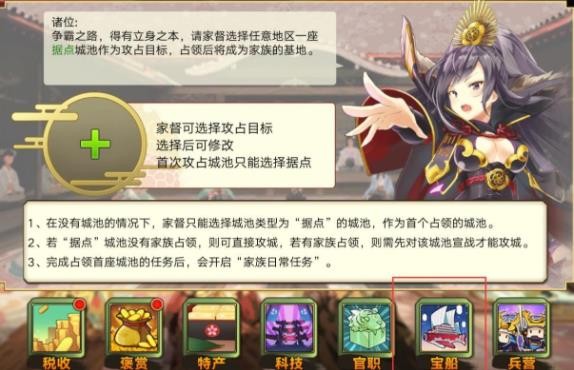 5. 每天11点、17点、20点,会有NPC提前预告攻打你们家族占领的部分城池,这时候把自己的部队派去守城,击退这些NPC会得判金,这是最重要的奖励,你以后判金的主要来源就是这里了。