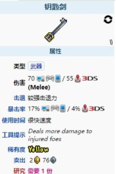 泰拉瑞亚钥匙剑怎么样?钥匙剑作用是什么?钥匙剑作为泰拉瑞亚游戏内的一把强力武器,在非射弹剑中伤害也是很高的,但是却没有特殊能力,想必还有很多玩家们不是很了解,那么接下来就带给各位玩家们泰拉瑞亚原版永夜刃武器图鉴,玩家们不要错过。