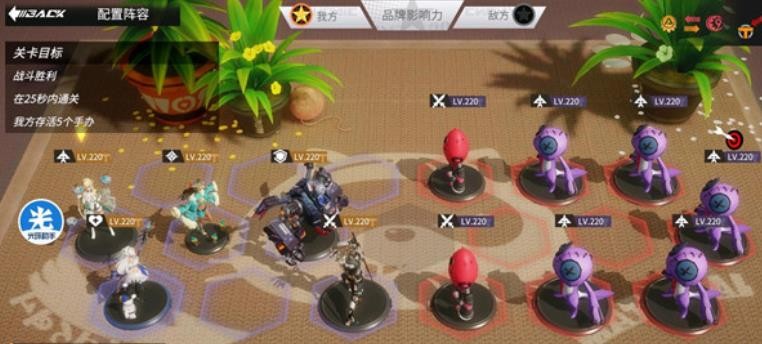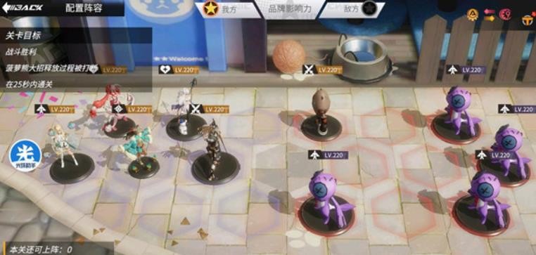 战斗胜利;菠萝熊大招释放过程被打断;在25秒内通关(困难)