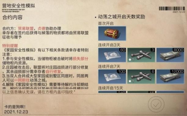 作为升级强化金库的重要资源,在签订动荡协议后可根据金库存放的 有效物资 来获得积分。