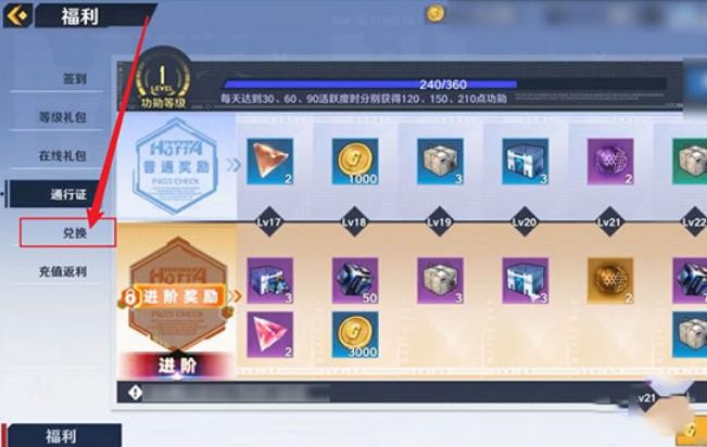 2、点击进入福利界面,找到左侧中的兑换一栏。