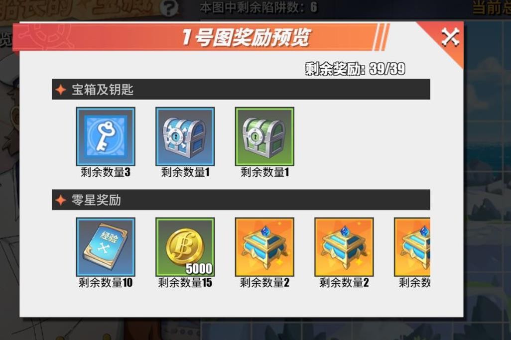 探索地图有机会获得随机道具、钥匙和宝箱。消耗钥匙可以开启宝箱,获得贝里、橙色星石、黄金之果等奖励!