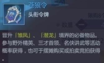 玩家可以通过摆摊,使用元宝来购买苍狼令。