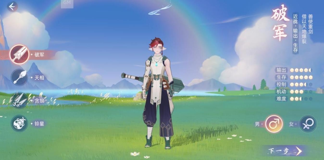 首先让我们来看看破军,游戏中破军的武器是一把重剑,这也意味着破军在团队中是不折不扣的输出担当。不过破军手中的这把重剑不仅能够对敌人造成强大的伤害,关键时刻还能抵御敌人的进攻。进可攻、退可守,这也是破军留给众人的最大印象。相对于其他几个职业来说,破军的操作难度较低但游戏生存值却很高,十分适合新手玩家操作。