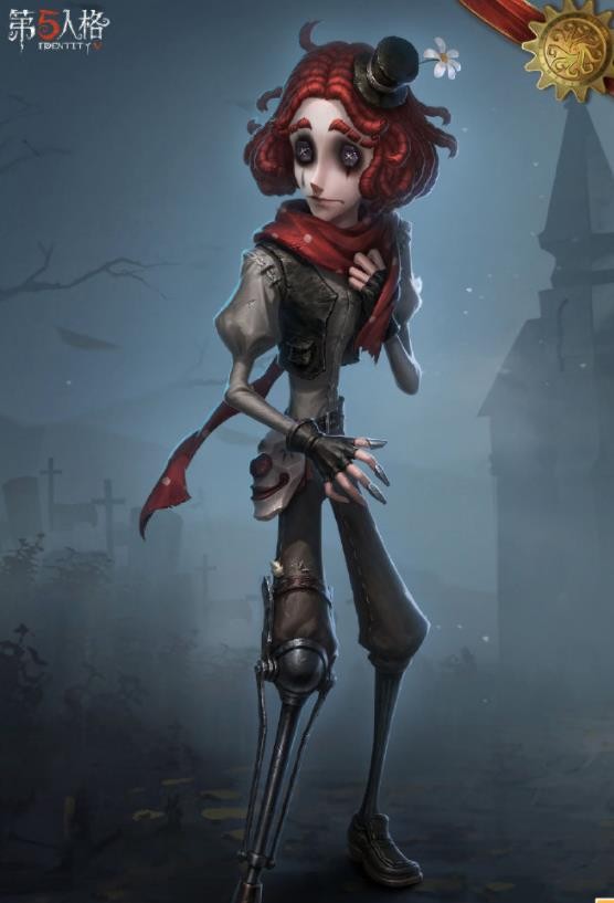 满头的火红头发和红色波点围巾让人不由得想起强壮的监管者小丑,笑脸面具随身携带,小礼帽上的那朵不起眼的鲜花却寓意着他心中暗藏的温柔从未改变;熟悉的手持物火箭筒尚未打磨上漆,把手处用红丝带缠绕,每一次挥舞,都能让他感受到久违的光亮与温暖。