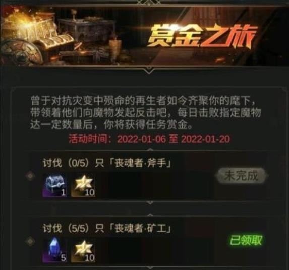本次赏金活动将持续7天,每天将会在活动页面展示,悬赏怪物名单及数量,达成目标可以换取奖励和积分,当积分达到一定数量,就可以免费换取一名随机传说品质再生者。