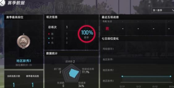 2、 玩家可在「经理排位赛」界面通过「排行榜」和「赛季数据」查看当前的全服排名情况以及自己的比赛数据详情。