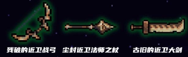 更新后,在地牢的战斗过程中,将可能捡到古代武器中的【残破的近卫战弓】、【古旧的近卫大剑】和【尘封近卫法师之杖】。