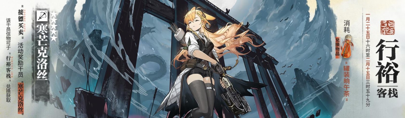 主要奖励:活动干员【★★★★★:寒芒克洛丝】、【山城茶馆】家具(部分)、罐装晌午茶