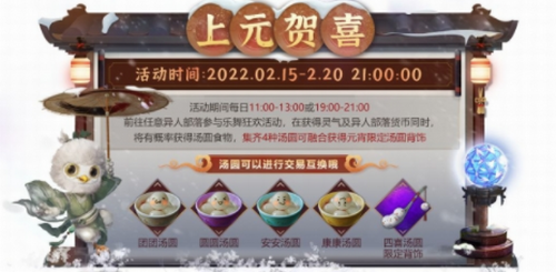 1、活动期间在指定时间前往任意异人部落参与乐舞狂欢活动,除了可获得大量灵气和异人部落货币之外,将有概率获得不同的汤圆食物道具;