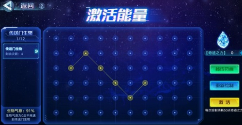3、绘制图案:小奥拉可以消耗奇迹之力,通过连点绘制图案进行传送门的激活。每天可以多次成功激活传送门,而首次成功激活传送门时可以获得一个传送门碎片能量。