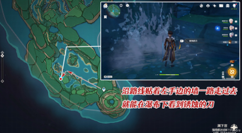 在渊下宫的图示位置,我们可以在瀑布底找到一把锈蚀的刀。