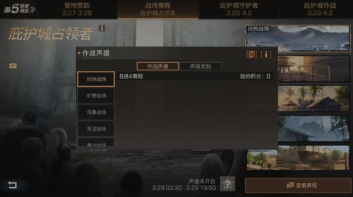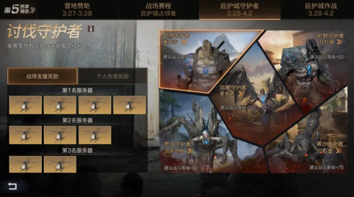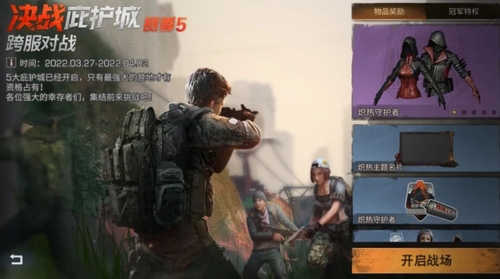 决战庇护城第五赛季将于3月27日-4月2日开启,每个战场会有8个营地进行比赛,比赛的方式为单局淘汰赛,总共持续7天。