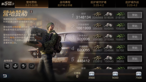 在3月27日-3月28日,所有幸存者可以在报名战场阶段进行营地赞助。