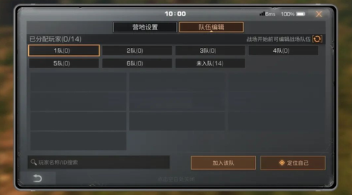 市长、代理市长与指挥官可以在庇护城作战页签编辑作战队伍以及给予作战基建建造权限,营地成员能手动加入任何作战队伍,战场能出战队伍6支作战队伍,每支队伍能容纳10名营地成员,即作战人数为60人。在作战队伍内的成员才能进入战场。