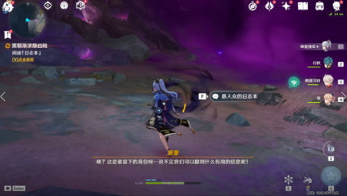2、调查眼前的黑雾,并在附近找到线索:愚人众的日记本,随后解锁无名遗迹的区域地图显示。