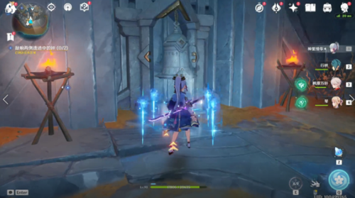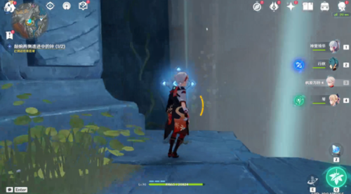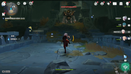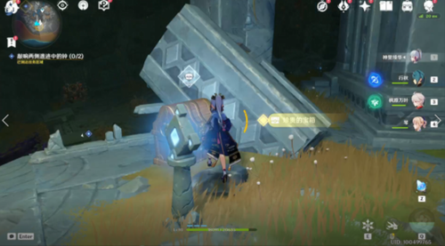 3、然后需要我们前往两处任务引导区域,敲墙两侧遗迹中的钟。