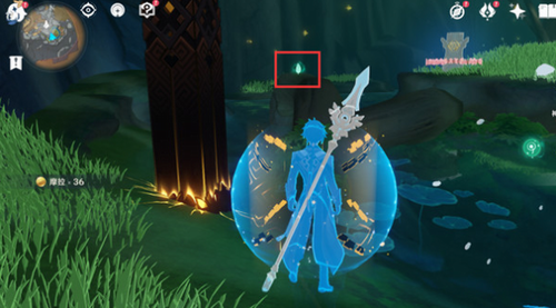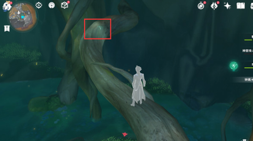通过派蒙的提醒,旅行者可以开启元素视野找树干上的新苗。
