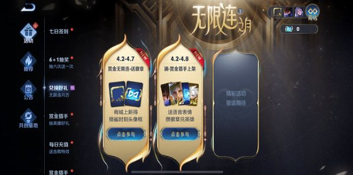 ④ 玩家可使用无限连徽章在兑换商城兑换英雄自选宝箱、回城特效自选宝箱、限时语音等奖励;
