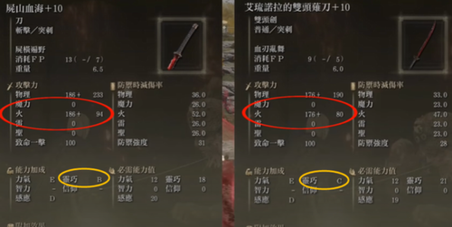 【艾尔登法环双头剑和尸山血海强度对比解析】