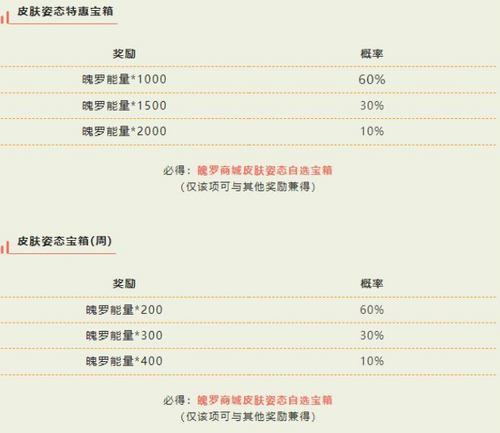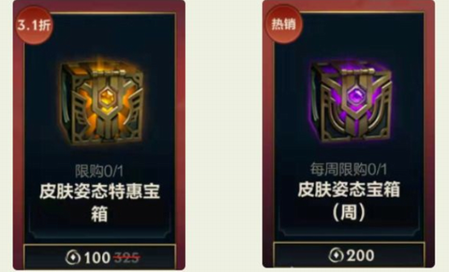 (2)皮肤姿态宝箱(周),每个账号在上架期间,每周限购1个;