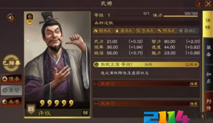 许攸可以带兵种宝物,但白板属性很低,尤其是统率。