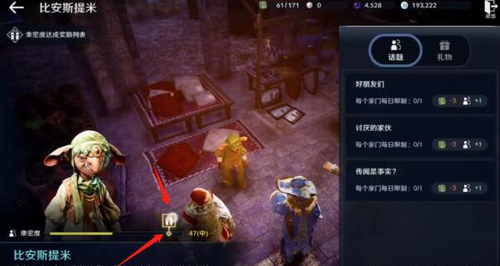 3、我们来到比安斯提米身边,点击对话选择亲密度。