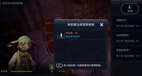 5、最后我们看到泰比尔蜡烛需要90亲密度即可获得。因此我们需要增加npc比安斯提米亲密度,当到达90时即可获得泰比尔蜡烛。