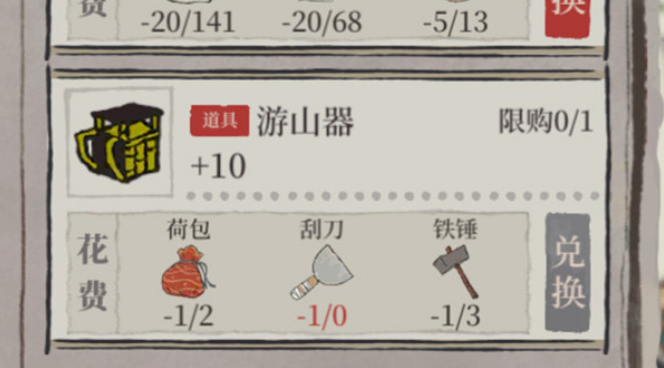 如果玩家没有刮刀也不想要麻烦的话,其实也可以选择用另外的资源来进行兑换,可以获得的游山器的数量还是很充足的。