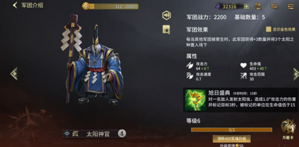 3、旭日:前期比较瓜,拥有最强的星星强化速度,缺点是基本没有几个能加数量的兵种,而且三本骑兵弟中弟,不会冲锋跑的慢伤害一般,只适合有数量加持的指挥官使用,你玩什么琴师亲王指挥官,玩旭日,就会发现自己星星很高,但没几个人,被人爆杀