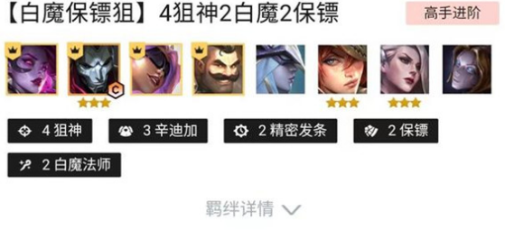 这套阵容的核心很多,可以是女枪,可以是烬,也可以是泽丽,8人口就能成型,如果场上物理阵容比较多,可以选择只上二白魔然后上四保镖二狙神,因为狙神后期不缺伤害,只要你的前排能顶得住,对面根本打不过你。