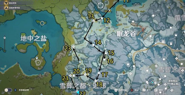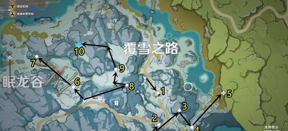 1、在覆雪之路和眠龙谷的中间位置,一共有10个