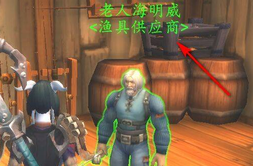 4、进去之后就可以找到渔具商人,就是老人海明威了。