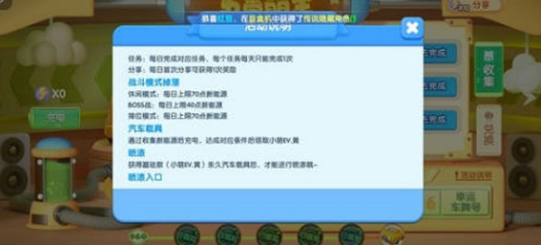 2:然后就是在排位模式中,休闲模式每个模式每天都是可以领取七十的能量的,然后在boss模式中可以拾取四十的能量,在算上我们的任务六十一天的能量的话可以获得二百四十的能量,同时因为安卓不支持分享所以拿不到分享的十点能量,这样算下来的话我们在第九天的时候就可以领取到小黄车这个物品了,还是比较快的。