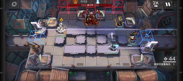 主力输出为老鲤和山。棘刺医疗可替换,因为位置的原因,棘刺打不到boss,换成其他人都行。