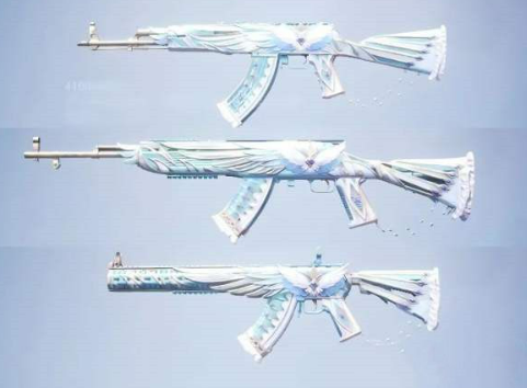 1、天之羽翼枪皮:天蓝色的,镶嵌着金色花纹。